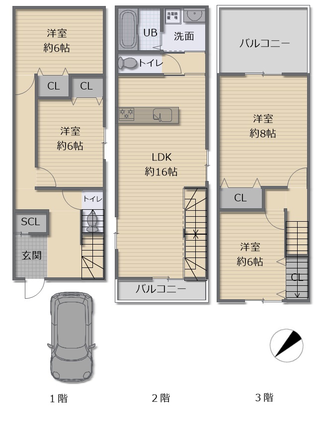 〇前面道路は約8メートルで、駐車も楽々