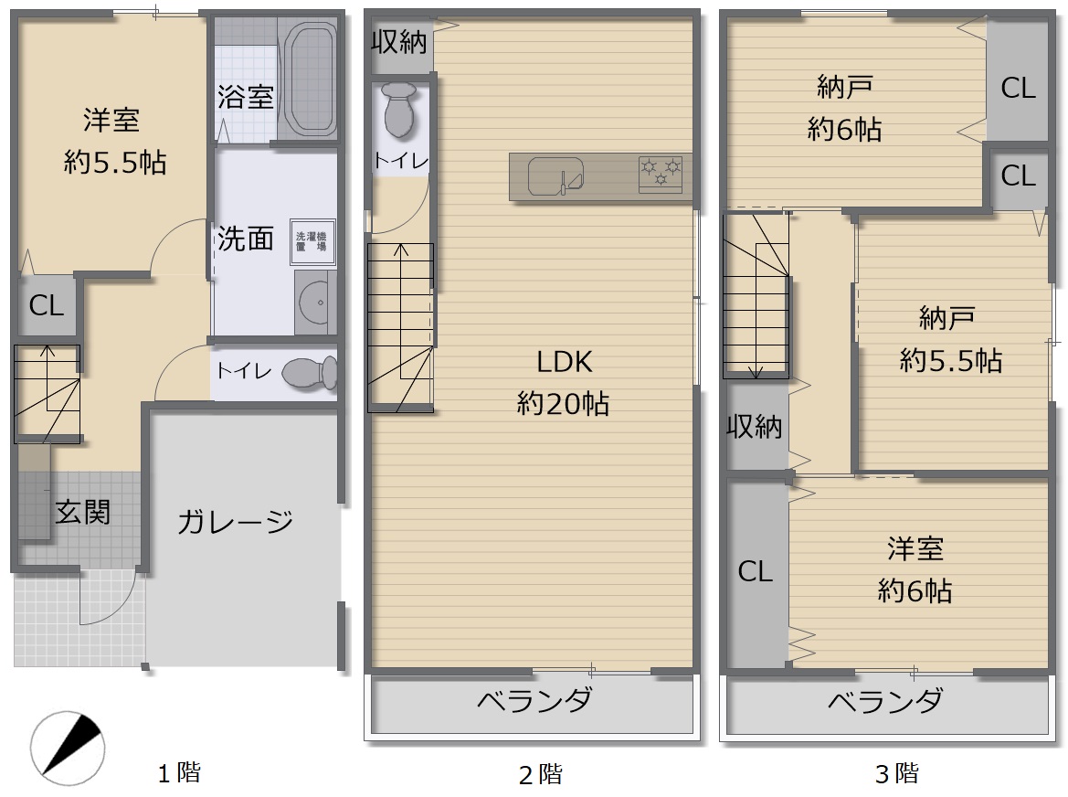 〇4LDK・リビング20帖以上の充実間取り。